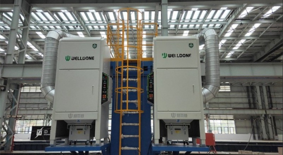 帶有焊接煙塵的空氣在熱力的作用下上升,吸入除塵管道內(nèi)經(jīng)除塵設(shè)備處理凈化后排入室內(nèi)。
