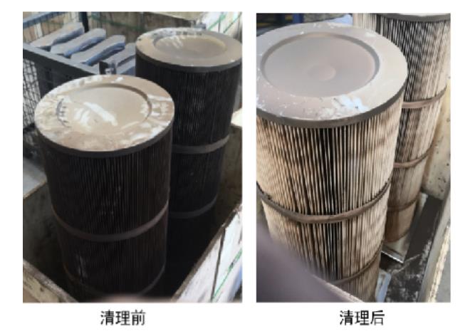 目前市場(chǎng)上濾筒除塵器內(nèi)部普遍采用脈沖反吹清灰技術(shù),高壓氣體在濾筒底部聚集,中上部形成負(fù)壓區(qū),近一半面積的灰塵無(wú)法徹底清除。濾筒再生設(shè)備的發(fā)明,改變了原來(lái)采用一把氣槍從濾筒外側(cè)清灰耗時(shí)耗力、棍子敲打損壞濾筒的現(xiàn)狀,大大提高了工作效率,保護(hù)了清灰人員的身體健康。實(shí)現(xiàn)了全自動(dòng)、全方位、徹底清除濾筒積灰,延長(zhǎng)了濾筒使用壽命,減少浪費(fèi),節(jié)約維護(hù)成本。