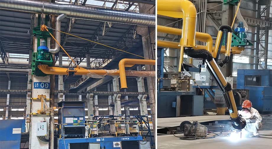 懸臂采用減速電機(jī)驅(qū)動(dòng)+無線遙控,可180°范圍內(nèi)轉(zhuǎn)動(dòng)定位,以便避開天車吊裝工件。