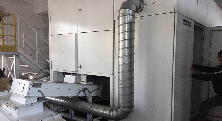 選用1臺(tái)一體式濾筒除塵器WLC-13YT,風(fēng)量13000m3/h,功率15Kw;2臺(tái)高真空除塵器WHV-320,風(fēng)量320m3/h,功率3Kw。