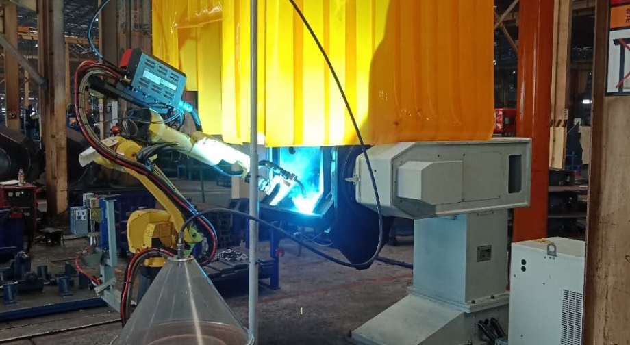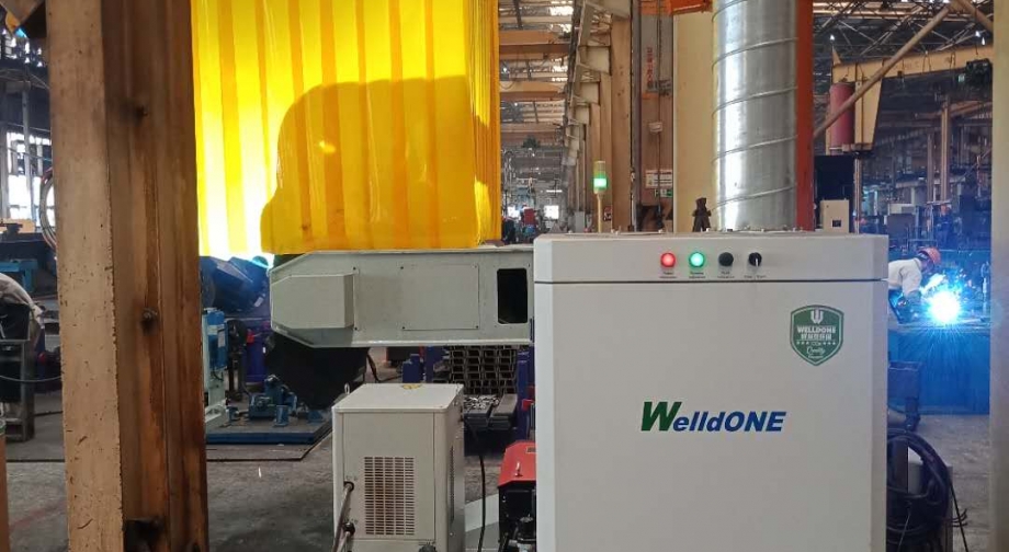 焊接工件尺寸較大,機器人焊接,工件行車吊裝搬運,工位固定,焊接方向多變。