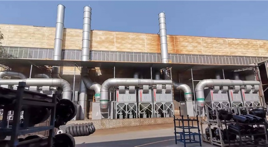 機(jī)臂架線和大件線的拋丸預(yù)處理除塵系統(tǒng)改造,24小時(shí)工作制,粉塵量特別大,抽塵管道和旋風(fēng)預(yù)處理器半年就磨穿。