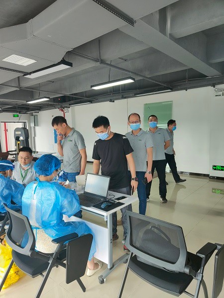 同時嚴格落實防疫措施,全程佩戴口罩,排隊時保持一米間隔,按照分部門、分時段、進出分離的要求有序的完成了本次全員核酸檢測。