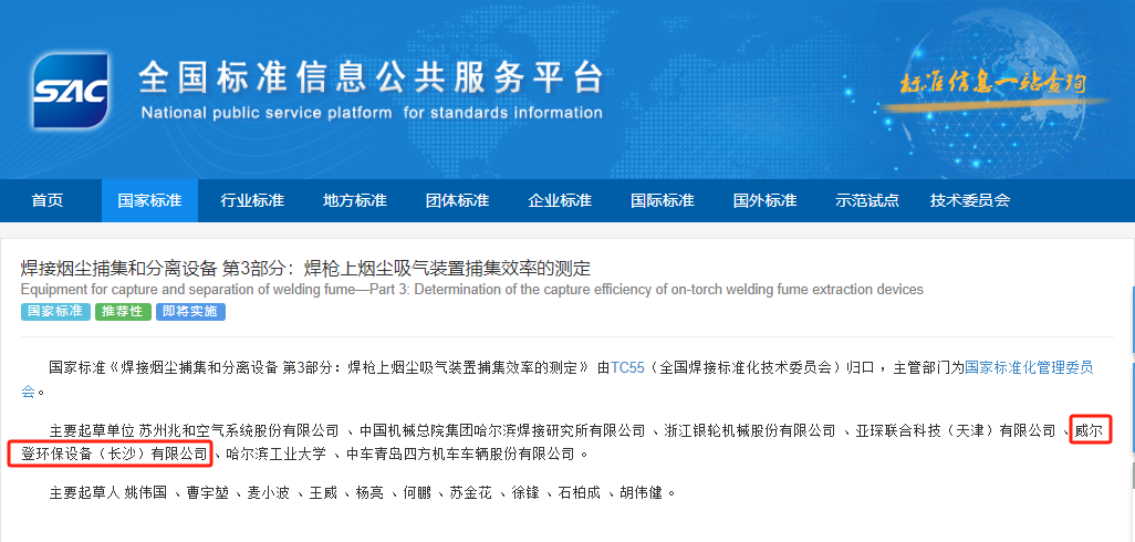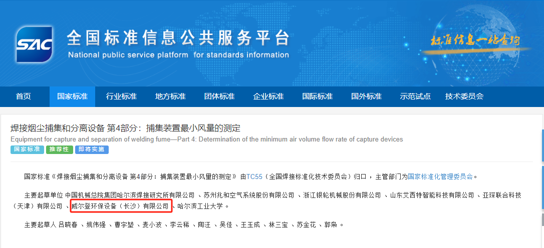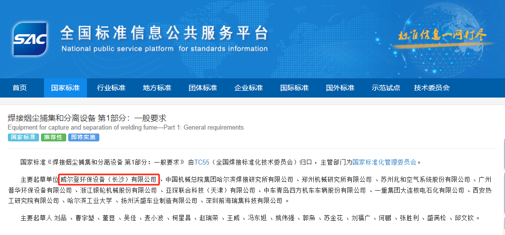 威爾登環(huán)保,作為業(yè)界領(lǐng)先的工業(yè)空氣治理解決方案服務(wù)商,我們自豪地宣布,在******標準化管理委員會新發(fā)布的《焊接煙塵捕集和分離設(shè)備》******標準中,我們公司榮幸地以******起草單位的身份參與了重要起草工作,為推動我國焊接行業(yè)的綠色轉(zhuǎn)型貢獻卓越力量!
