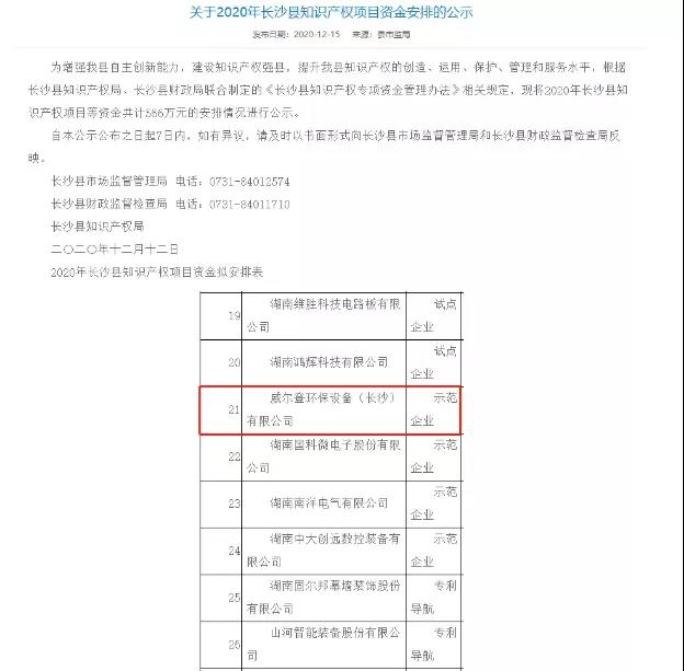 ▼ 12月25日,獲評(píng)“2020年長(zhǎng)沙縣知識(shí)產(chǎn)權(quán)示范企業(yè)”