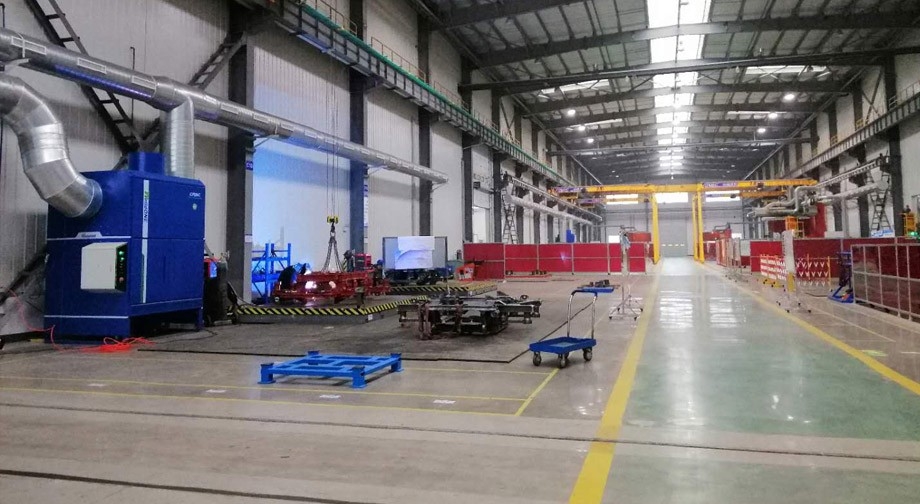 車體車間存在大量焊接工位:焊接工件較大,工件需翻轉(zhuǎn)及吊裝,焊接形式多變,不適合局部及源頭治理方式,廠房尺寸為:200m(長)×24m(寬)×15m(高)。