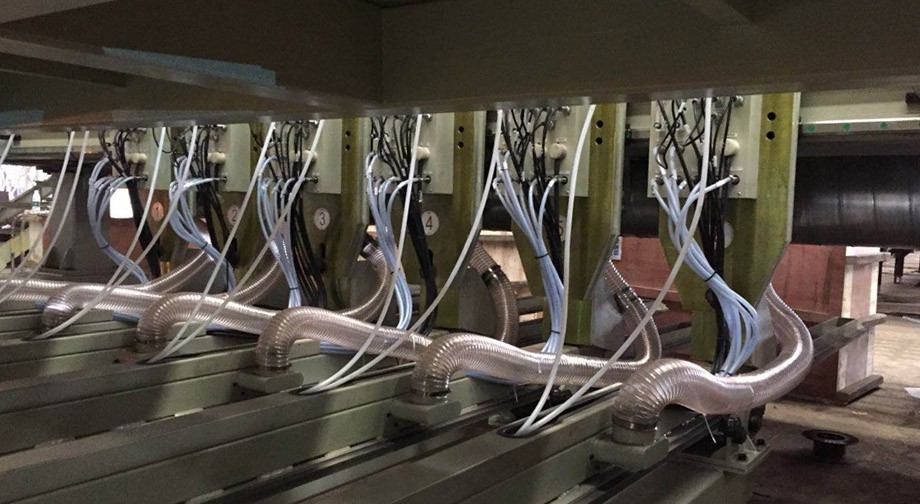 采用點(diǎn)對(duì)點(diǎn),一把焊槍對(duì)應(yīng)一條吸塵軟管,軟管與U型箱梁連通形成負(fù)壓在內(nèi)部捕捉煙塵。