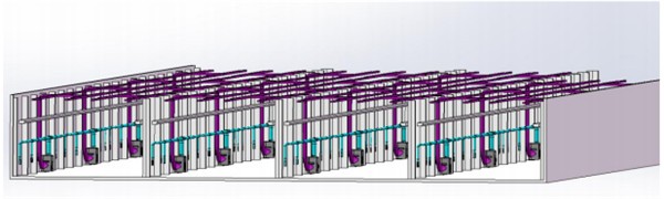 工作原理:下送上回整體除塵系統(tǒng)采用一臺(tái)或多臺(tái)除塵設(shè)備組合使用,系統(tǒng)采用送風(fēng)筒送風(fēng),送風(fēng)筒沿立柱布置(高度為2~3m)頂部回風(fēng),回風(fēng)管道布置在車(chē)間頂部。車(chē)間在送、回風(fēng)及熱力的作用下,形成一個(gè)自下而上的氣流組織。焊煙在熱力及送風(fēng)的作用下向車(chē)間頂部流動(dòng),在除塵設(shè)備風(fēng)機(jī)的作用下,經(jīng)回風(fēng)管道及時(shí)將焊煙抽入除塵設(shè)備內(nèi),過(guò)濾后再循環(huán)回到車(chē)間。通過(guò)這一連續(xù)循環(huán)的過(guò)程,焊接煙塵被不斷的收集起來(lái),以此達(dá)到焊接煙塵整體治理的目標(biāo)。