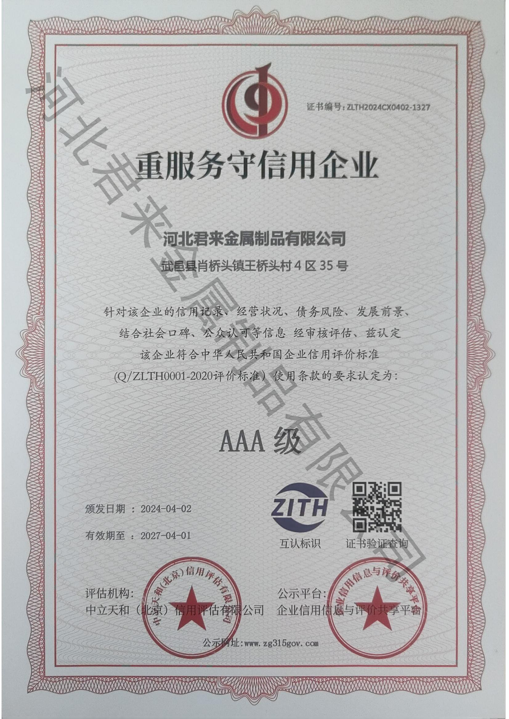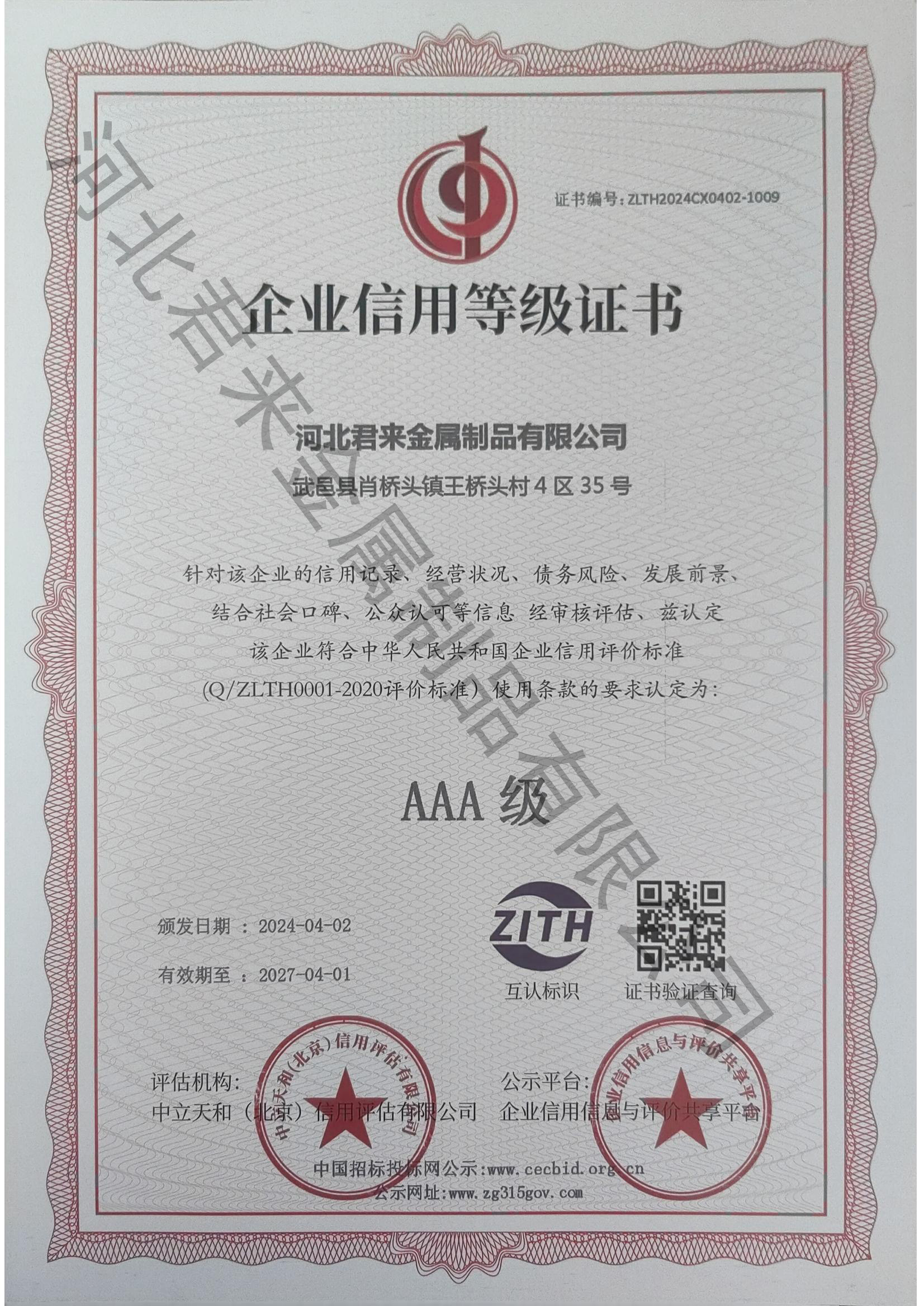 企業(yè)信用評(píng)價(jià)AAA級(jí)信用企業(yè)