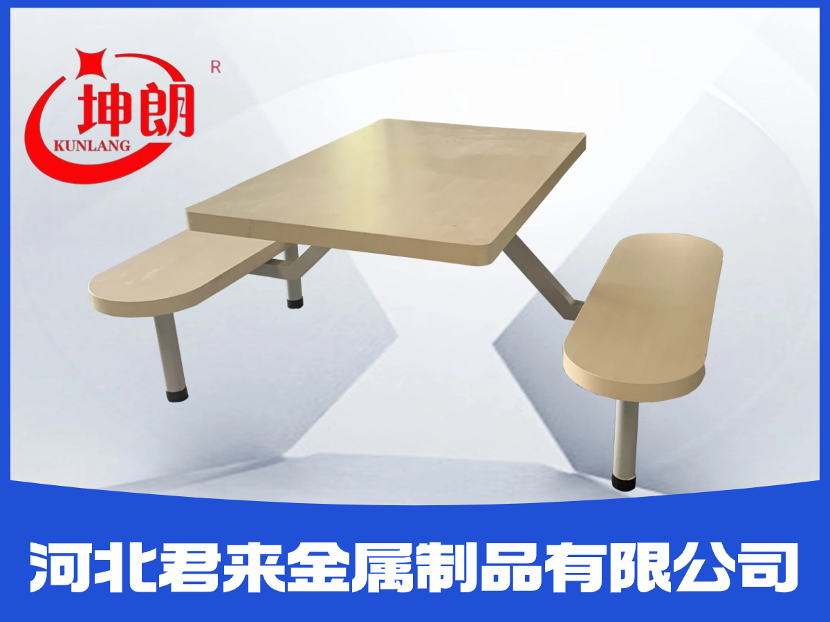 食堂餐桌用材比較廣泛,多以桌面與座椅相連接的款式為主。高度以720mm-760mm為標準,餐桌椅是人類日常生活和社會活動中使用的具有坐臥、憑倚、餐食等功能的器具。通常由若干個零、部件按一定接合方式裝配而成。給大家用餐時使用的桌椅,鋼木結(jié)構(gòu)居多,結(jié)構(gòu)簡單,顏色簡潔。