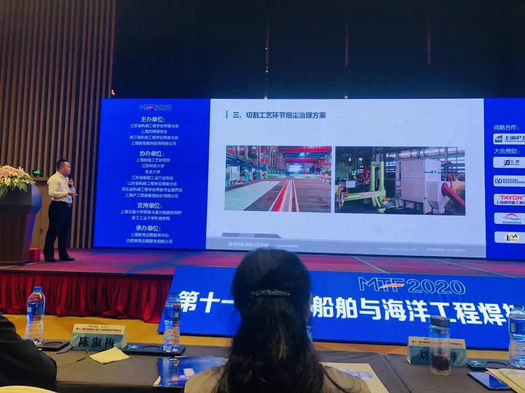 論壇會現(xiàn)場,威爾登營銷經(jīng)理袁祖建進行了“綠色發(fā)展,高效智能——工業(yè)空氣治理解決方案”的主題演講,詳細(xì)介紹了當(dāng)前船舶制造產(chǎn)生的污染物,針對船舶制造中鋼材的預(yù)處理、切割、裝焊、打磨、拋光、舾裝等工藝在生產(chǎn)中存在的痛點、難點提出了解決方案,并對生產(chǎn)車間中產(chǎn)生的煙塵粉塵量大、抽風(fēng)管道易磨穿、切割機跨距太大吸煙困難、有害氣體難以捕捉等問題一一做了解析。演講贏得了與會人員的高度關(guān)注與認(rèn)可。