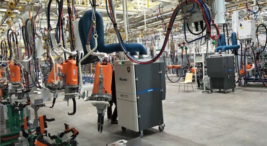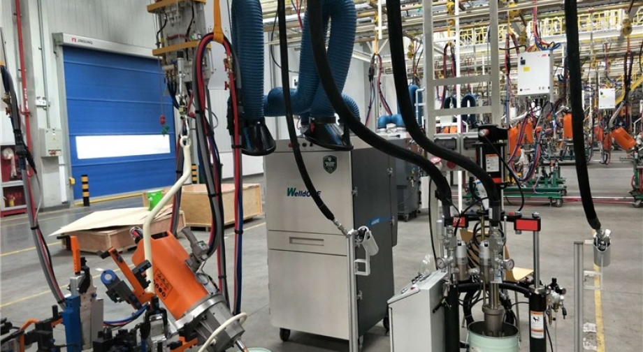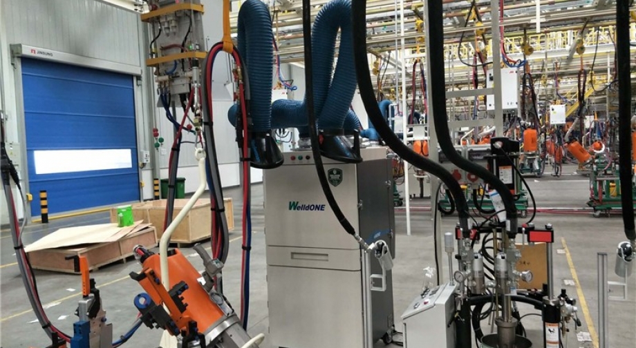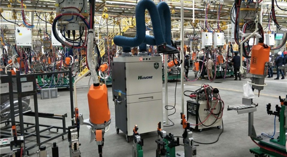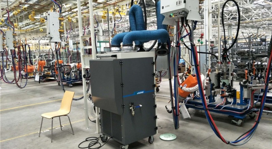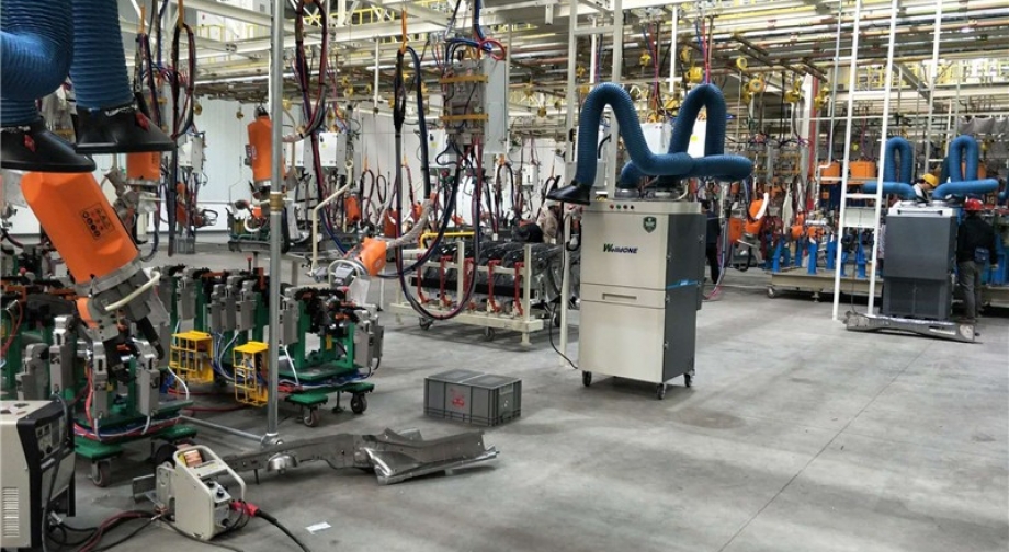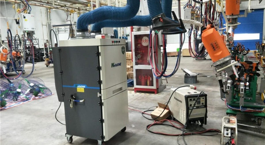 采用移動式煙塵凈化器除塵系統(tǒng),配套3m長吸氣臂,每兩個工位共用一臺除塵設(shè)備。